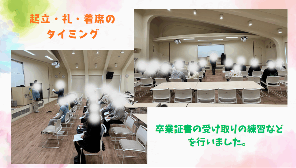 卒業証書や卒業の歌、在校生からのメッセージ・卒業生からのメッセージなど、